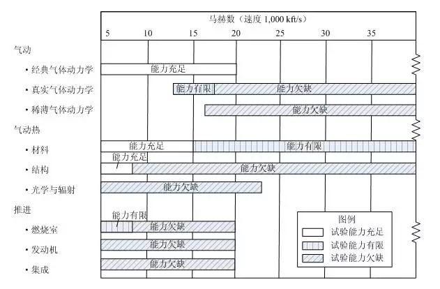 圖1 NASP計劃結束時(1994年)美國高超聲速試驗設施能力狀態